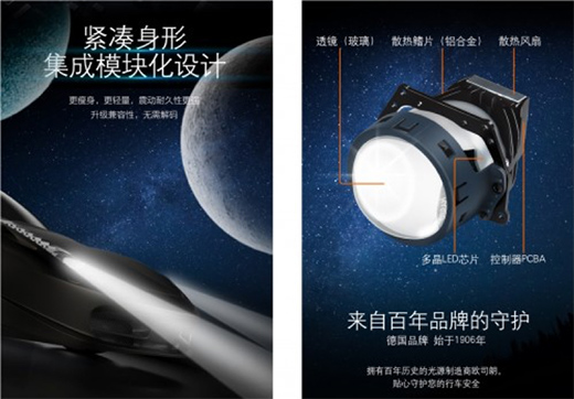 歐司朗LEDriving CBI PRO 雙光透鏡采用集成模塊化設計,集透鏡、多晶LED芯片、控制器PCBA、鋁合金散熱鰭片和散熱風扇于一身,更瘦身,更輕量,震動耐久性更強,并且升級兼容性,無需解碼,能適配更多不同車型。