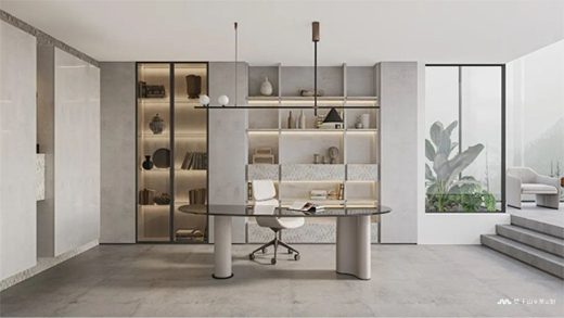 客廳式書房呈現(xiàn)出開放式的輕奢