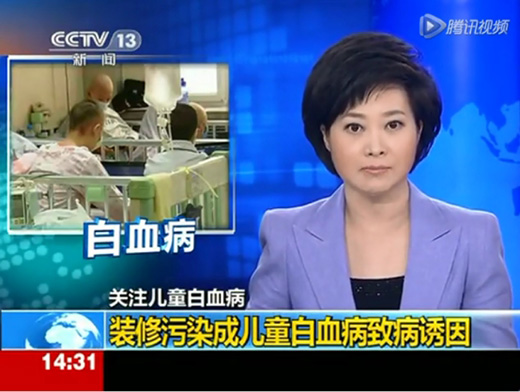 【CCTV-13 新聞】關(guān)注兒童白血病-裝修污染成兒童白血病致病誘因