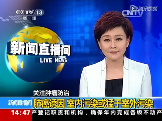 【CCTV-13 新聞】關(guān)注腫瘤防治(肺癌誘因)——室內(nèi)污染或猛于室外污染