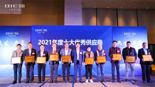 即將過去的2021年,在國際大宗商品價格持續暴漲的影響下,億合門窗仍舊憑借百折不饒的精神,以及優質的產品和服務,向廣大用戶交上了一份漂亮的答卷。在這背后,離不開全體供應商的配合和支持。此次會上,億合門窗為2021年度表現卓越的供應商伙伴頒發了“2021年度十大供應商”以及“2021年度優秀供應商”兩大獎項。