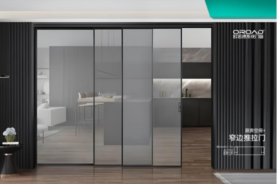 一處日常烹飪的區域,也是感受幸福美好的空間,當廚房有了煙火氣,家也就有了溫度。為了隔絕油煙,密封性好的推拉門是廚房空間的不二之選,極窄邊框設計搭配硅化毛條,不僅起到隔絕油煙的作用,窄邊可視面,保證空間的明亮、通透、開放,增大空間視野。
