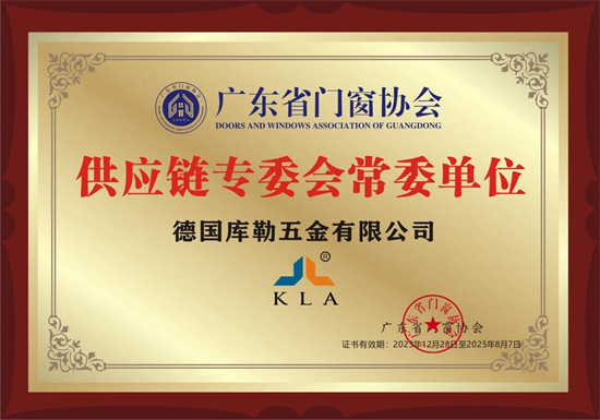 本次會議,德國庫勒五金董事長丁振偉先生被授予廣東省門窗協會供應鏈專委會常委。廣東省門窗協會是門窗行業的權威機構,對核心成員的評選和任命極其嚴格,此次庫勒五金董事長丁振偉先生被推選為廣東省門窗協會供應鏈專委會常委,證明了庫勒五金的生產實力和產品質量是五金行業的佼佼者,處于行業領先水平。