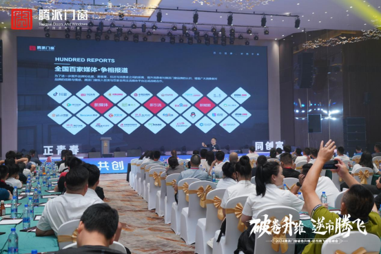 聚力成勢,奮楫升維,創贏未來,勇于突破。騰派門窗創始人楊建圍繞會議主題“破卷升維·逆市騰飛”發表講話。楊總強調:“基地升級、產品升級、定位升級、營銷升級和渠道升級”是騰派門窗面對內卷市場所指定的戰略方向,2024年將深度推進五大升級,深耕下沉市場、舊改市場、毛坯房市場。騰派門窗將聚焦終端,將增長戰略落到實處,加速布局空白網點,利用新媒體工具賦能,攜手明星代言引爆流量,強化人才隊伍的建設。