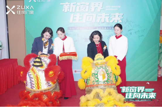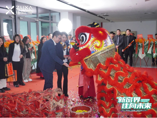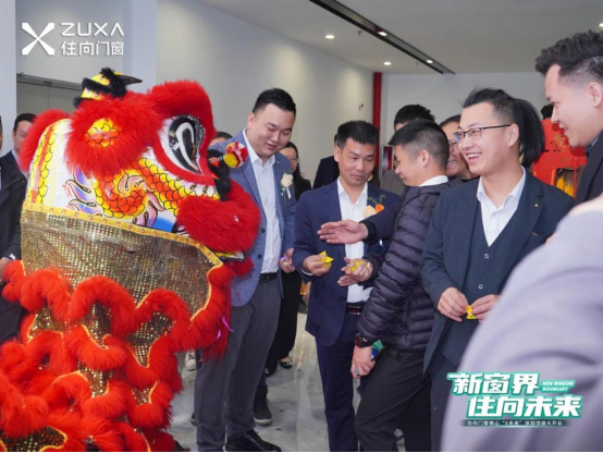 剪彩儀式后,醒獅點睛環節將現場氣氛推向高潮。廖敏女士和楊硯涵女士手持金筆,為祥獅點睛,寓意著住向門窗在新的一年里生意興隆,財源廣進。醒獅舞動,鑼鼓喧天,現場觀眾無不為之振奮,共同感受傳統文化與現代科技的完美結合。醒獅的威武與門窗的精致相得益彰,展現出住向門窗在傳承與創新中的獨特魅力,也象征著品牌將在新的一年里如醒獅般活力四射,勇往直前。