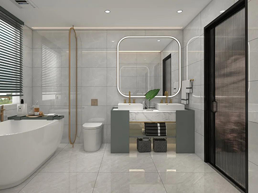 新卡洛灰清新的紋理令人放松寧靜,最適合用在洗盡一身疲憊的浴室之中。