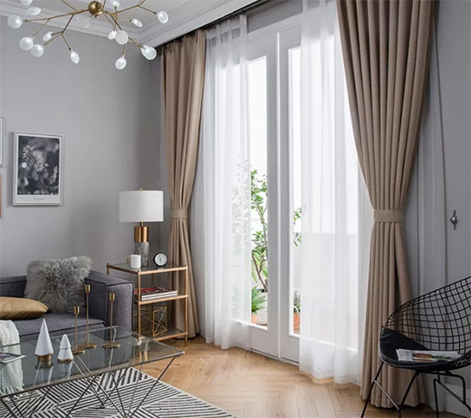 純色系窗簾搭配非常適合打造精致而簡約的現代生活環境。絲毫不顯累贅的莫蘭迪配色加上一點性感的裝飾元素,就能靈活空間的高雅藝術氛圍。