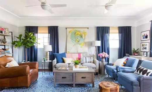 藏藍色它是高貴的,是貴族的象征,性感而成熟的色調賦予它深度的優雅。藏藍色神秘而優雅,在家居應用中,它從不挑剔空間,無論是別墅還是公寓,它都能完美駕馭。本期小編就給大家分享藏藍色窗簾在家居中的應用。