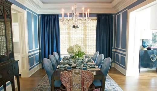 在餐廳中也可以使用藏藍色的窗簾