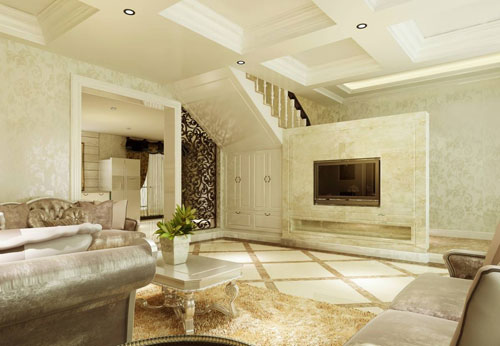 米色在任何時候都會體現出一種優雅和高貴,靜靜地,但是卻有魅力無比。一整墻米色歐雅壁紙上面蔓延著柔美蘭花,清麗的色彩搭配細膩的壓紋,讓整個空間看上去靜謐而優雅,旁邊帶有布藝設計的沙發讓整個房間彰顯了歐洲的貴族宮殿的某一個空間。