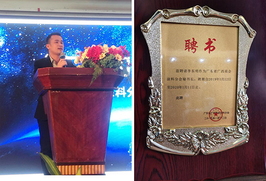 2019年,廣東省廣西商會涂料分會邀請了君匠世家藝術(shù)壁材總經(jīng)理李東明先生擔(dān)任秘書長一職。在其后的一年內(nèi),李總參與籌劃商會各類活動,攜手各成員團(tuán)結(jié)互助,共同應(yīng)對國內(nèi)涂料市場的變化挑戰(zhàn),關(guān)心和支持家鄉(xiāng)建設(shè),促進(jìn)涂料行業(yè)朝著健康良性的方向快速發(fā)展。