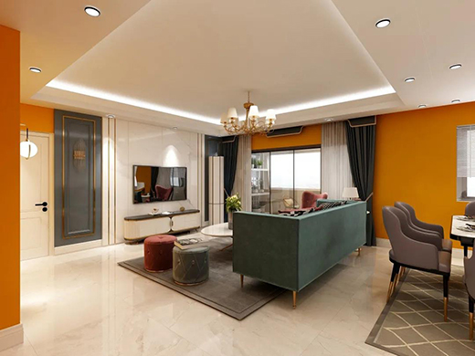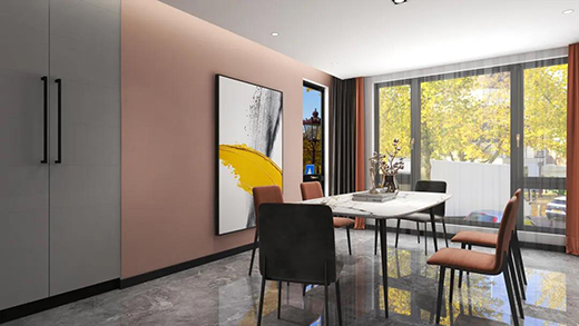 ?、苋钆洹?臻g中的主色彩不超過三種,并且所占比例不得少于20%,三色組合使用得當,往往可使空間效果、家庭氛圍醒目、溫暖。通常,我們可以采用相鄰色系搭配和互補取色搭配方法。例如: