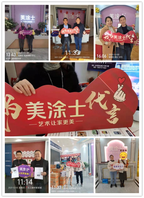 在活動期間,各地消費者紛紛為美涂士代言,一來表示對美涂士品牌的信任,二來對美涂士服務的認可和產品質量的放心。而消費者的信賴與認可,將會成為美涂士源源不斷的動力,從而研發出更優良的產品,提供更貼心的服務,更優秀的涂裝解決方案,讓生活更美麗,更健康。