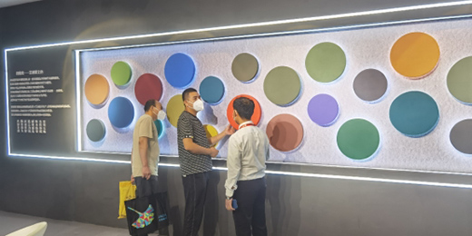 百聞不如一見,吉蒂亞的藝術涂料也吸引著更多的觀展商前來切身體會吉蒂亞的品牌魅力和產品成效。展會首日,吉蒂亞展廳的觀展者就已絡繹不絕,接待人員一刻不得閑地沉浸在與觀展者的解說和交流中,現場一片熱火朝天。