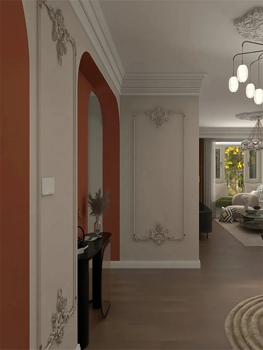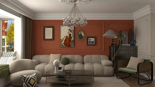 帝卡斯藝術(shù)涂料整個(gè)客廳采用大膽的色調(diào)來進(jìn)行了一場(chǎng)混搭,突破了傳統(tǒng)的設(shè)計(jì),墻面是藝術(shù)漆,以暖白作為整體色系搭配,與復(fù)古裝飾混搭融入其中,把色彩熱烈的碰撞拉回平衡舒適的境地。