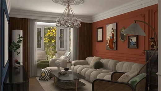 帝卡斯藝術(shù)涂料屋主不喜歡冷淡的黑白灰,也不喜歡有太多的設(shè)限和固定思維,更喜歡有點(diǎn)復(fù)古、無拘無束的感覺,所以在色彩搭配和軟裝裝飾上,打造相對(duì)多變的“風(fēng)馬牛不相及”的混搭風(fēng)。低明度的全相型配色,大膽的色彩搭配和處處彰顯品質(zhì)的紋祥細(xì)節(jié),張揚(yáng)不失內(nèi)涵;設(shè)計(jì)感強(qiáng)的家具,異域風(fēng)情的織物裝飾,令人耳目一新。