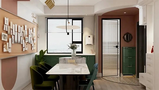 一個(gè)家,需要煙火氣息,生活才會(huì)有滋有味。通透玻璃的現(xiàn)代風(fēng)吊燈,加上木質(zhì)與大理石的搭配餐桌增加了質(zhì)感和韻味,精致度滿分,整個(gè)空間相得益彰,滿足著味蕾盛宴,定格著美好生活的場(chǎng)景。