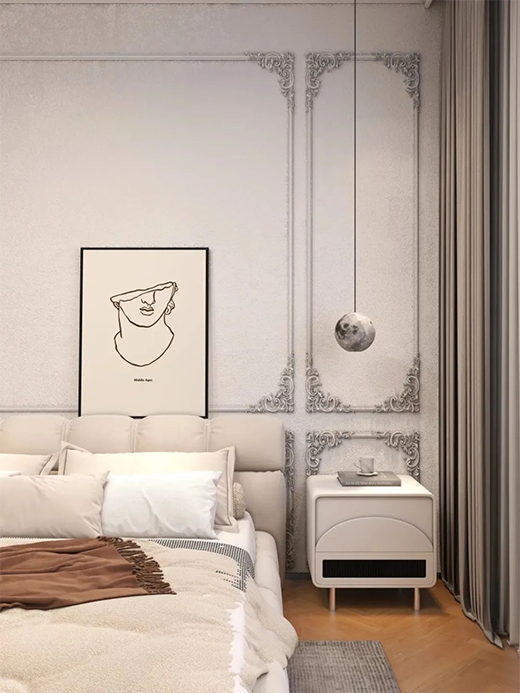 復(fù)古吊燈投射下配合著品味不俗的藝術(shù)畫裝飾,讓整個(gè)空間營造出繁而不雜,華而不奢的雅致氛圍。