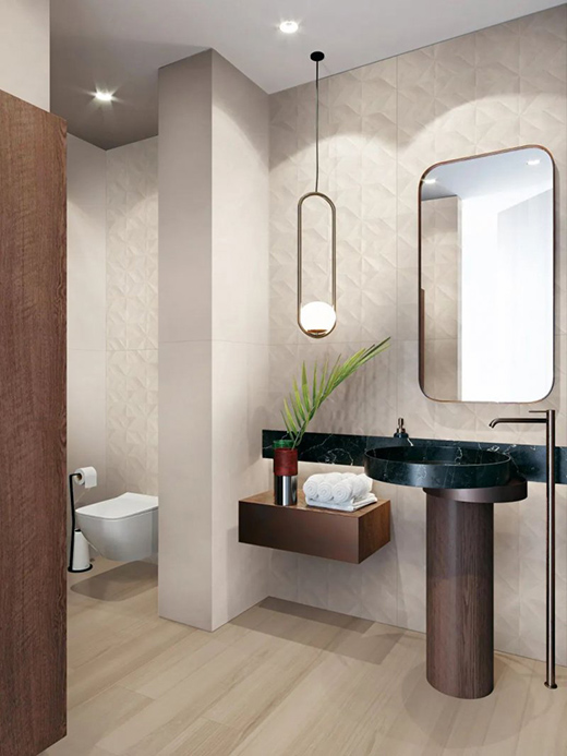 3D激光精雕模具與先進釉面技術、仿古等多重工藝結合,釉面肌理效果突出、色彩自然,加倍提升瓷磚表面質感。以每個執著工藝的瞬間為居者打造高級、靜謐的自然居所。