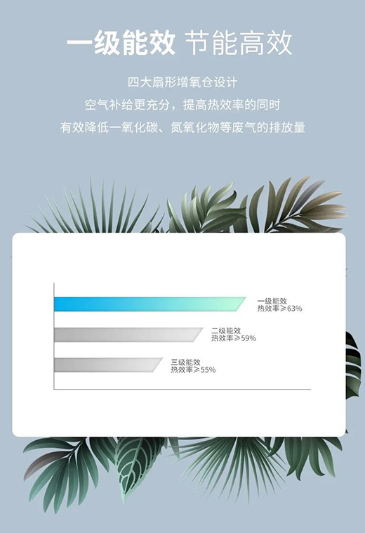 四大扇形增氧倉設計,提高了熱效率的同時,降低一氧化碳、氮氧化物等廢氣的排放量!
