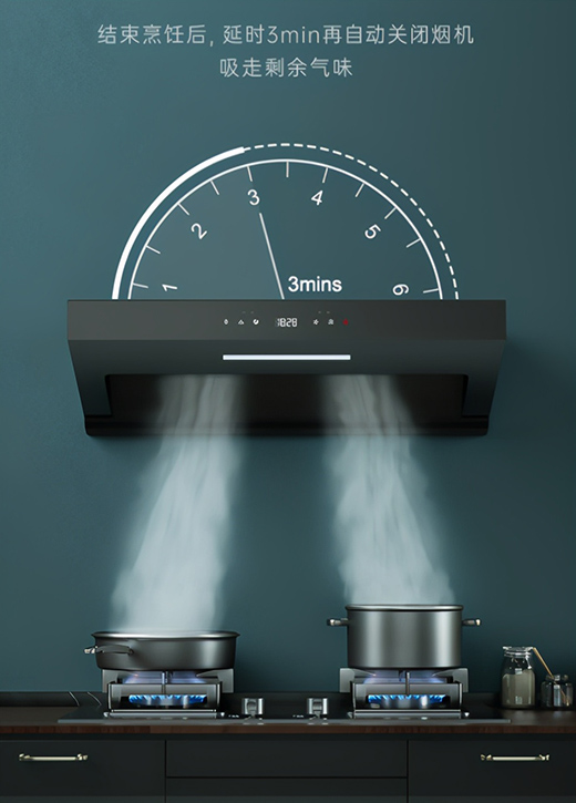 蘇泊爾DE50油煙機讓您下廚不再手忙腳亂,小火煲湯大火爆炒,不僅要調節火候,還要調節油煙機吸力,蘇泊爾DE50油煙機實現煙灶聯動,灶具點火后煙機自動開啟,火大吸力強勁,火小吸力減弱,燃氣灶關閉,油煙機還有延時關機設置,會在3分鐘工作后關閉,從容應對廚房油煙問題。害怕煎炸爆炒廚房就煙霧繚繞,嗆得人眼淚直流,22m3/min大吸力在你進行爆炒時持續180秒的強勁大吸力,油煙迅速排走。搭配895mm寬域攏煙,廣域覆蓋立體速吸,即使雙灶同時開火也不怕油煙外泄,實力除煙。
