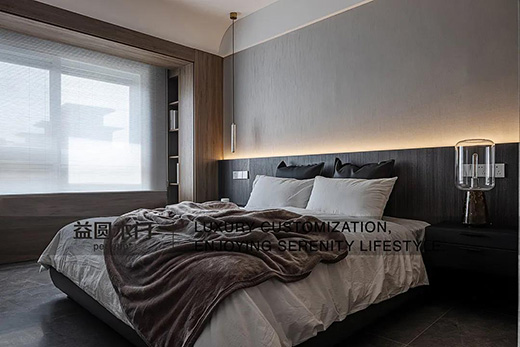 老人房精簡形式與功能,選擇舒適耐用的家具。飄窗臺與收納組合也考慮到低姿使用的狀態(tài),搭配高彈軟墊,久坐也能有舒適的體驗。