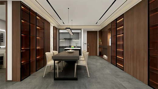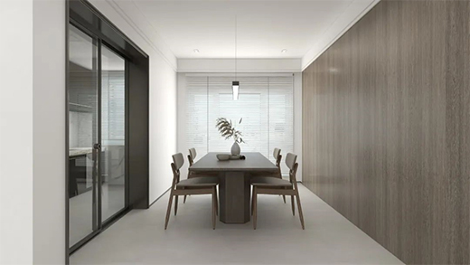 【極窄推拉門16系列】與室內(nèi)門平行分割空間,不僅有效隔絕廚房油煙外延,也為餐廳帶來明亮的采光。沐浴朝陽與晚霞,與家人共享一日三餐的幸福。