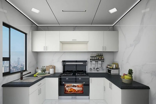 奧華煥新裝廚房套餐,超高顏值大板吊頂天然“無縫感”。通過自由裁切和搭配,匹配線燈、燈帶等無主燈設(shè)計(jì),獲得更個(gè)性的廚房裝飾效果。