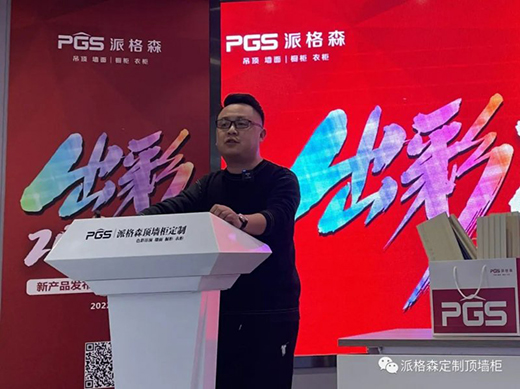 市場部吳經理上臺發布第九代SI,預示派格森正式進入了頂墻柜定制的新紀元。第九代SI通過4個維度表現:一是色彩視覺藝術,二是色彩與產品的融合,三是年輕化的風格調性,四是頂墻柜的場景體驗。色彩門頭,以藍色為底,醒目的品牌標志,自發光字體,整體簡約精致,一目了然。派格森專賣店打造集家居體驗,交流,展示,銷售,等于一體的生活家居體驗館。