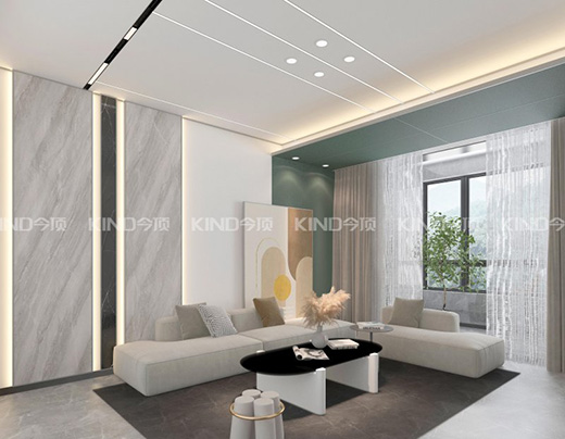 如以今頂石膏白大板作為主色調可顯示出典雅和高貴。用其他跳色作為點綴,則反應出主人熱情好客的態度。