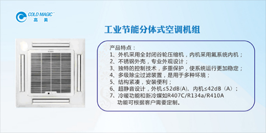 高美空調隸屬于廣東高美空調設備有限公司,這是一家集中央空調的研發、生產、銷售和服務于一體的大型現代化強企。成立多年,高美企業始終堅持創新研發,致力于為各大購物中心、酒店、體育館、電影院、醫院等大型公共場所提供環保節能的空調系統及相應配套的技術服務。而工業節能分體式空調機組,便是高美空調的其中一大杰作。