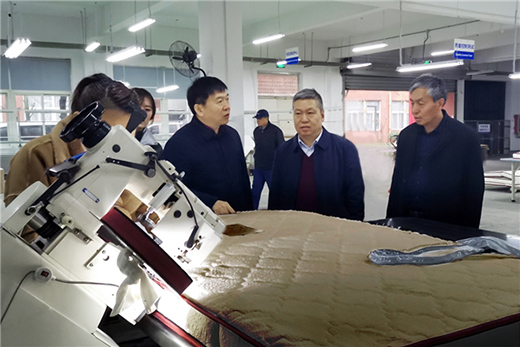 圖為:河北空調執(zhí)行董事劉俊勤(前排右二)等領導參觀樂康科技研發(fā)基地