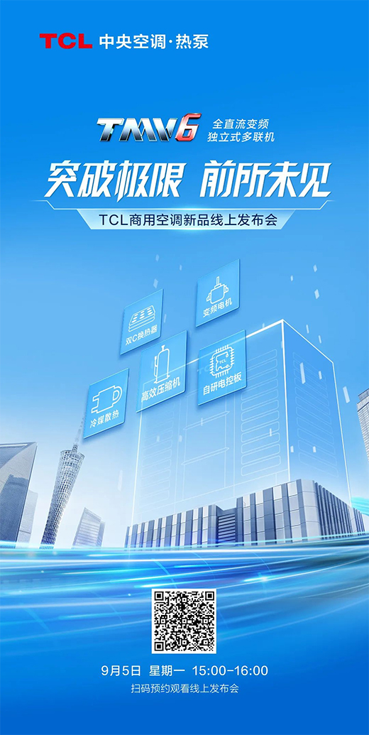 隨著市場消費主體和消費需求的不斷更新迭代,如何打造更舒適、更智能、更便捷的空氣調節解決方案成為行業的大勢所趨。TCL商用空調自2003年進入中央空調領域開始,從未停止前進創新的步伐,始終堅持用科技創新響應用戶需求,打造綠色智慧空間。此次新品發布,將以“突破極限,前所未見”為主題,于9月5日全球線上首發,敬請期待!