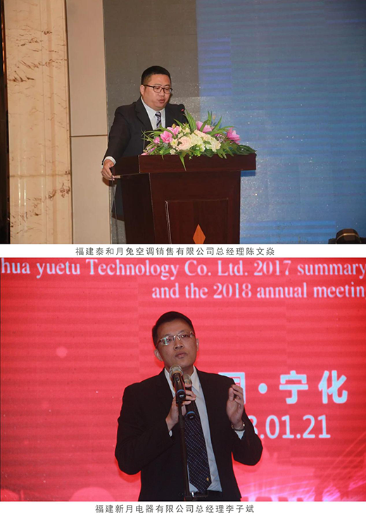 厚積薄發,布局未來!福建泰和月兔空調銷售有限公司總經理陳文焱回顧2017年經營數據:回款總額3.2億元,發貨總數20萬套。2018年通過海陸空銷售體系布局,營銷工作轉型升級,打造品牌。產品結構優化加生產后盾的大力支持努力完成40萬套的銷售目標。最后陳總指出月兔要做“有價值,值錢,有未來,可傳承”的企業。