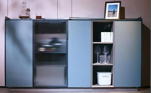 斗柜使用低調不張揚卻又質感滿滿的莫奈色,一體化設計美觀與實用性兼具,開放格和玻璃柜有序搭配,在加強收納能力的同時,斗柜物品有藏有露,猶抱琵琶半遮面,為整個居家風情的打造錦上添花。