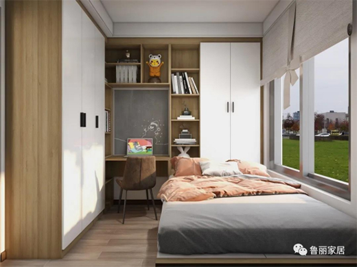 功能與顏值的相映襯可以為空間帶來(lái)更多的驚喜體驗(yàn)。魯麗家居設(shè)計(jì)師在設(shè)計(jì)女孩房時(shí)便充分考慮這一層面,將空間轉(zhuǎn)角區(qū)域充分利用,在兩側(cè)衣柜拐角處做書桌設(shè)計(jì)連成一體,整體空間溫馨舒適又不失功能性,非常適合想要擁有多重功能的小空間。