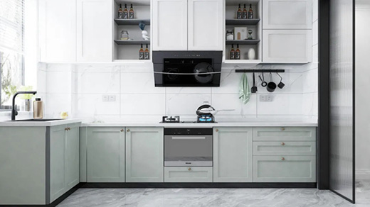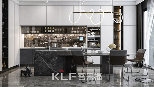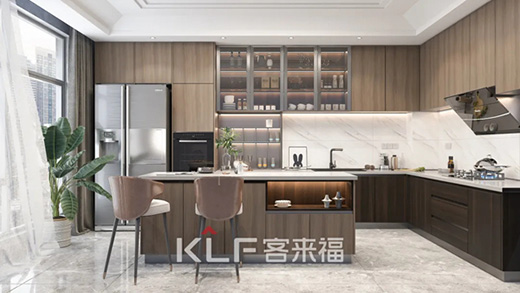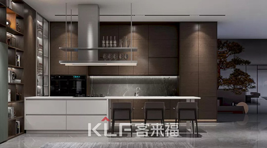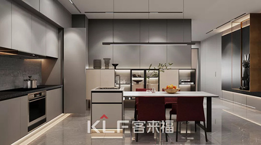 客來福多款廚房設計很好地融合了中廚和西廚,既可以實現爆炒煎炸和燒煮,還可以制作精致的西式冷餐和醇香咖啡,滿足全家人的口味。