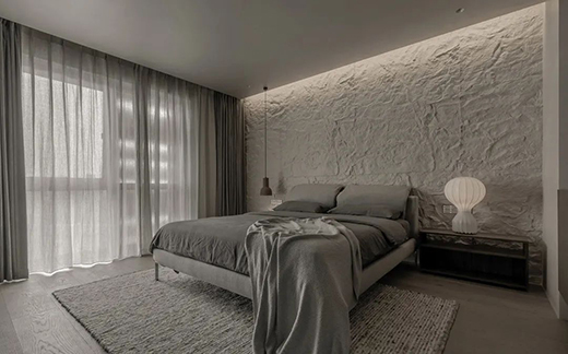 在最樸實(shí)無華的空間里,容納淺色及天然材質(zhì)的沙發(fā),彰顯自然、安靜、禪意的東方美學(xué)。紋理質(zhì)樸的器皿、精細(xì)打磨茶幾、獨(dú)特紋理地毯,每件物品都能散發(fā)出耐人尋味的溫度,在低色溫的燈光渲染下,室內(nèi)氛圍呈現(xiàn)安靜的和諧感及朦朧感。
