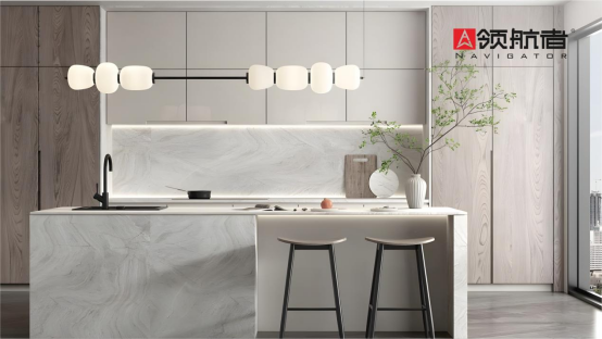 新年廚房煥新,廚房除了電器多之外還有一個(gè)重要的物品,那就是儲物柜。如果沒有柜子,東西就沒安放的地方,看起來就會很凌亂。領(lǐng)航者家居通過整體式吊柜收納設(shè)計(jì),提升空間儲物能力。吊柜設(shè)計(jì)既不占地面空間,又實(shí)現(xiàn)了儲物與美觀的完美結(jié)合。色彩搭配上使用了淺色系,細(xì)節(jié)用金屬元素來點(diǎn)綴,提升廚房格調(diào),營造實(shí)用而美觀的廚房環(huán)境。