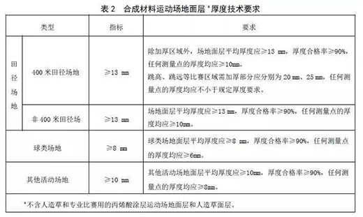 (2)為了保證合成材料面層運動場地能達到相應的安全保護性能和耐用性能,本標準結合現行國家標準和國際標準,對面層厚度作出如下要求: