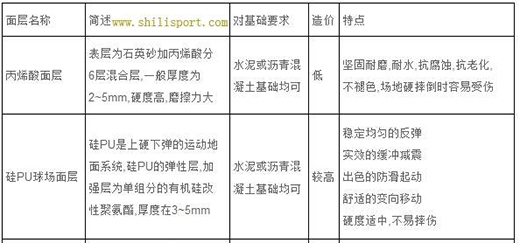 PU材料: 聚氨脂橡膠、有彈性、有韌性、防水效果好,即是塑膠籃球場.