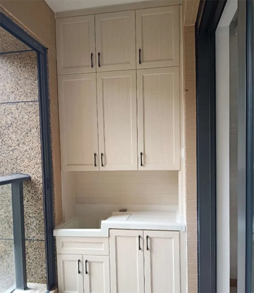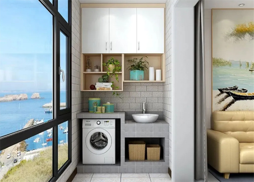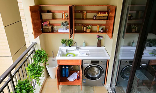 所以,最為理想的洗晾一體型陽臺柜,儲物柜、手洗盆和洗衣機一個也不能少。