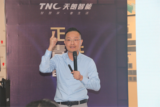 接著盛會進入白熱化階段,在熱烈的掌聲中迎來“TNC智能家居新品發布”。現場來賓目光如炬,眼神由始至終都聚焦在天朗新品上。據悉,本次新品融匯了天朗智能卓越團隊的最新創新成果,從產品性能到產品質量都取得了質的飛躍。來賓們紛紛用筆或手機記錄下產品的最新賣點,以便日后在終端銷售中能第一時間抓住消費者的購買欲。