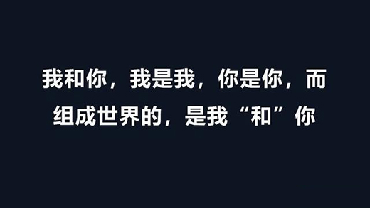 所以所謂的和,就是我和你,原本這個(gè)世界就是我就是我,你就是你,那為什么要和呢?我和你才是這個(gè)世界,所以我們的世界就是我和你,謝謝大家。