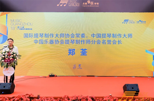 國際提琴制作大師協會常委、中國提琴制作大師、中國樂器協會提琴制作師分會名譽會長鄭荃在開幕式上致辭