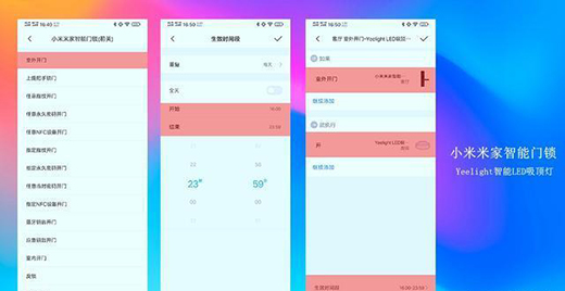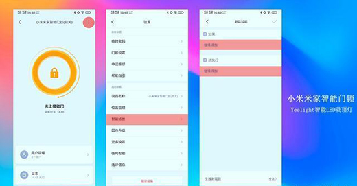 可能大家會說為什么要設(shè)置16:00,其實(shí)如果夏天還可以往后比如20:00,但目前是冬天黑天時間比較早,所以大家可根據(jù)所在地具體的黑天時間進(jìn)行設(shè)置。相信大家已經(jīng)對于這個設(shè)置比較感興趣了,下面車車就簡單講解一下,如何通過米家APP進(jìn)行小米米家智能門鎖與 Yeelight靈犀吸頂燈以及Yeelight智能LED吸頂燈聯(lián)動設(shè)置。