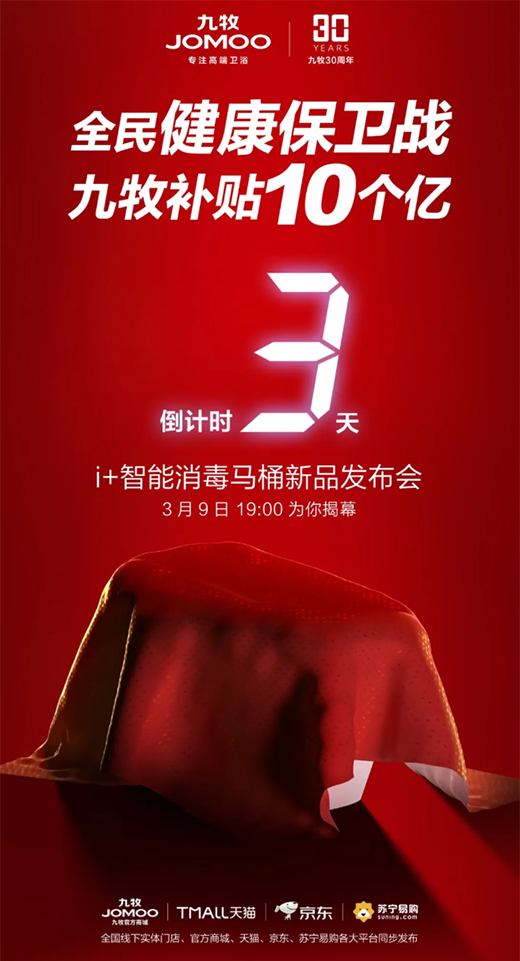 九牧愛家智能消毒馬桶將于3月9日19:00 盛世首發(fā),敬請關(guān)注。