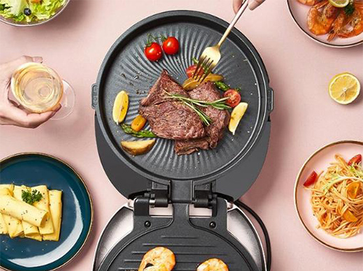 在我們中國人的餐桌上,主食可不僅僅局限于米飯,在生活中,愛吃面食的朋友們也不在少數。很多人都喜歡自己制作一些小點心,比如說披薩、煎餅等,但是苦于沒有趁手的工具,所以烹飪這件小事往往都以失敗告終。這時候,如果有一臺煎烤機就可以完美解決這些問題了!美的煎烤機JK30P201是一款多功能的叫家用煎烤機,無論是披薩、生煎包、煎餅它都可以輕松應對。它采用了懸浮式烤盤,25mm加大加深的烤盤設計可以充分適應食材的厚度,在烹飪的過程中能夠保留食材的蓬松口感。與此同時,它還具有速脆大火力功能,預熱快,熟得快,哪怕是窩在家里吃烤肉,也可以在短時內大飽口福,無需等待。