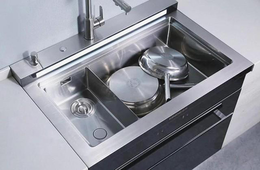 其次,為了盡可能減少?gòu)N電產(chǎn)品的占用空間,必須選擇高度集成化的產(chǎn)品。例如金帝旗下的集成灶產(chǎn)品,將油煙機(jī)、燃?xì)庠睢⒄艨鞠浼谝簧恚瑢?shí)現(xiàn)了多種烹飪功能,實(shí)際占用空間還不足一平,并且多樣的功能也確定了其烹飪中心的位置;集成水槽,則是將水槽與洗碗機(jī)相結(jié)合,充分利用水槽下空間,打造出全新的廚房洗滌中心。