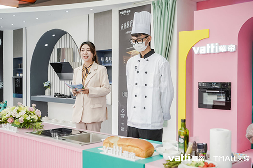 為擴大發布會的受眾影響,本次戰略合作采取通過華帝天貓旗艦店進行線上線下同步直播的方式,讓更多的觀眾參與其中。發布會于北京時間4月8日于杭州親橙里舉行,活動現場分為室內與室外兩片區域,室外則以產品展示的形式,結合年輕時尚的色彩搭配設計,以及沉浸式的實景體驗,立足于年輕人潮流眼光而制定的現場企劃,使觀眾進一步感受“悅己生活”的精彩?,F場華帝主播通過直播講解了華帝全系廚電新品,并與廚師通過新品蒸烤一體機23011iot款制作美食,真實感受華帝智慧廚電所帶來的對傳統廚房家居的創新與突破。